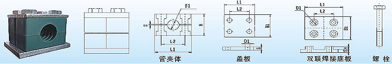 管夾體 | 蓋板 | 雙聯焊接底板 | 螺栓 | |||||||||||||