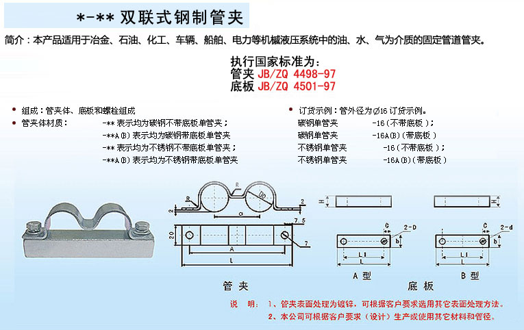 產(chǎn)品特點(diǎn):雙管夾結(jié)構(gòu)簡(jiǎn)單,安裝簡(jiǎn)便快捷,是管道施工的優(yōu)良產(chǎn)品。