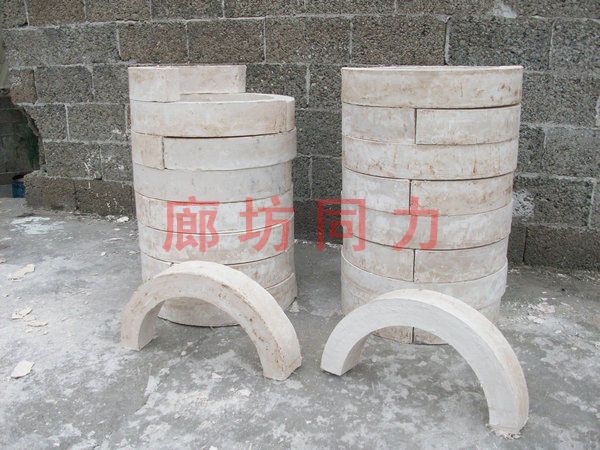 隔熱管托的加工涉及節能型管托及其隔熱層成型的胎模具。所述管托包括管托上底板、隔熱層、加強彎釘、上滑動件。上滑動件固定在管架上與管架形成一個摩擦副;隔熱層是復合保溫材料,上底板、隔熱層和上滑動件粘連成一體;所述的加強彎釘固定于上底板和上滑動件上,散布于隔熱層內,并且交錯排列。該管托結構簡單、成本低、兼具保溫和滑動靈活的特點,適用廣泛。所述的胎模具包括圍板、圍板組合裝置、管托上底板固定裝置。該胎模具通用性強、固定方便,省工省料,使管托的制作成本進一步降低,可廣泛用于各種輸送冷熱介質管道的支吊之用。