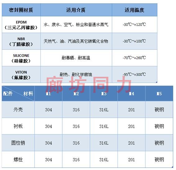 橡膠材質(zhì):三元乙丙橡膠、硅膠、氟膠、丁腈橡膠等。